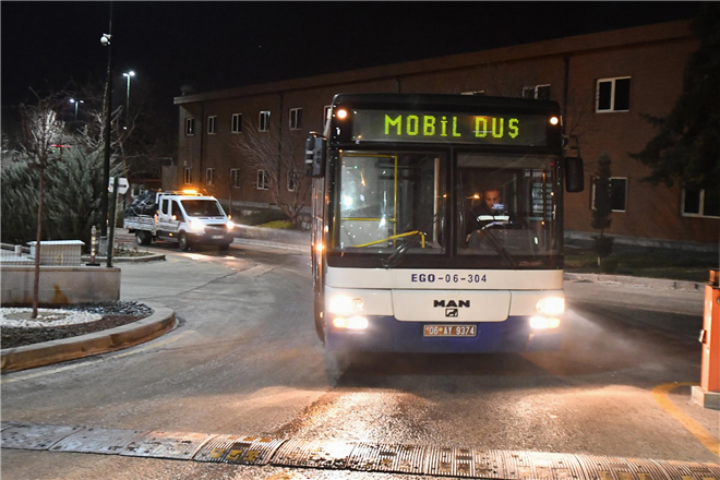 Ankara Büyükşehir Belediyesi yolcu taşımada kullanım ömürleri tamamlanan otobüsleri deprem bölgesine gönderilmek üzere mobil duş, kazan dairesi, yatakhane, berber ve çamaşırhaneye dönüştürdü.