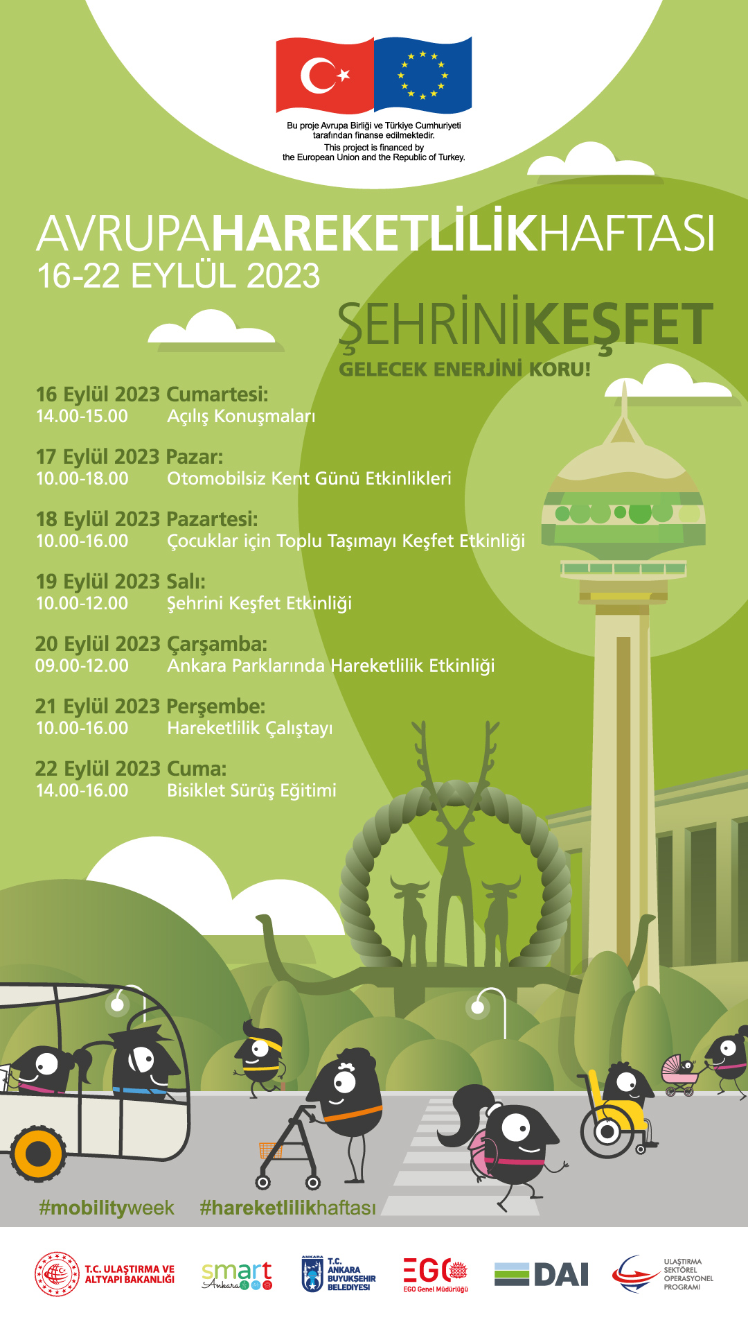 Avrupa Hareketlilik Haftası programları kapsamında düzenlenen etkinlikler; 16 Eylül Cumartesi günü EGO Genel Müdürü Nihat Alkaş’ın tanıtım videosu ile başlayacak.