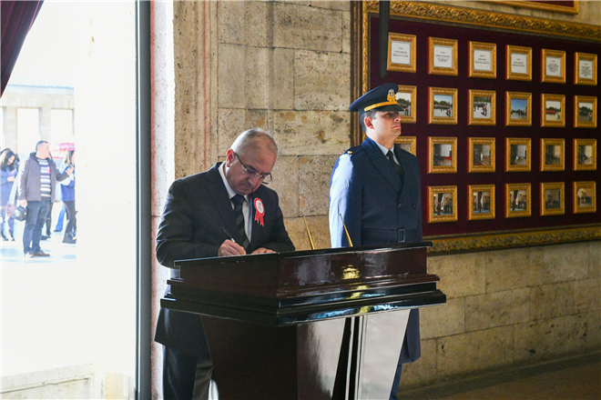 Alkaş ve beraberindeki heyet Aslanlı Yol'dan yürüyerek, Mustafa Kemal Atatürk'ün mozolesine geçti. Alkaş'ın mozoleye çelenk bırakmasının ardından saygı duruşunda bulunuldu.