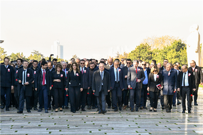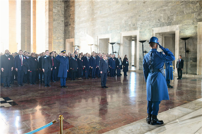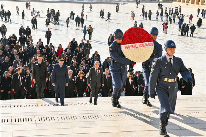 EGO Genel Müdürü Nihat Alkaş, Genel Müdür Yardımcıları, Daire Başkanları ile çalışanlar, EGO’nun ‘81. Kuruluş Yıl Dönümü’nde Anıtkabir’i ziyaret etti.