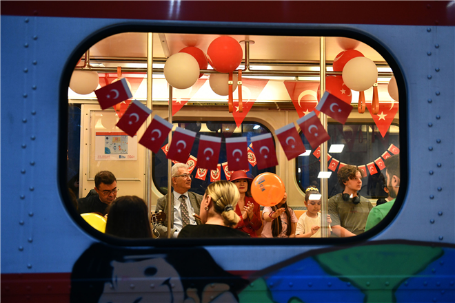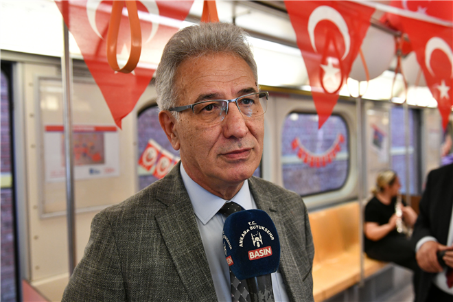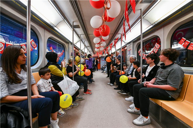 EGO Genel Müdür Yardımcısı Zafer Tekbudak, “23 Nisan Ulusal Egemenlik ve Çocuk Bayramı ülkemizin dört bir yanında coşkuyla kutlanan önemli bir bayramdır. Başkentte yaşayan çocuklarımız için etkinlik planladık onların sevinç ve coşkusuna ortak olmak istedik. 1997 yılında hizmete açılan ve Ankara Metrosunda kullanılan bombardier metro vagonları Türkiye’nin ilk metro olma özelliği taşıyor. 2018 yılında servisten kaldırıldı ve 2021 yılında trenlerin dışını grafiti, iç kısmını da Türk bayrakları ve balonlarla süsledik. Buda büyük bir ilgi gördü. Bugün Kent Orkestrasının seslendireceği mini konser ile güzel bir yolculuk yaptık. Yolcuğumuz Macunköy Metro İşletme Müdürlüğünden başlayarak Koru metro İstasyonu ve Sincan Organize Sanayi Bölgesi yönünü dolaşarak yolcularla birlikte bir tur yaptık. Çocukların 23 Nisan ile ilgili yaptıkları resimlerde trenlerimizde sergileniyor. Diğer trenlerimizin tutamaçlarında da resimler yer alıyor” dedi.