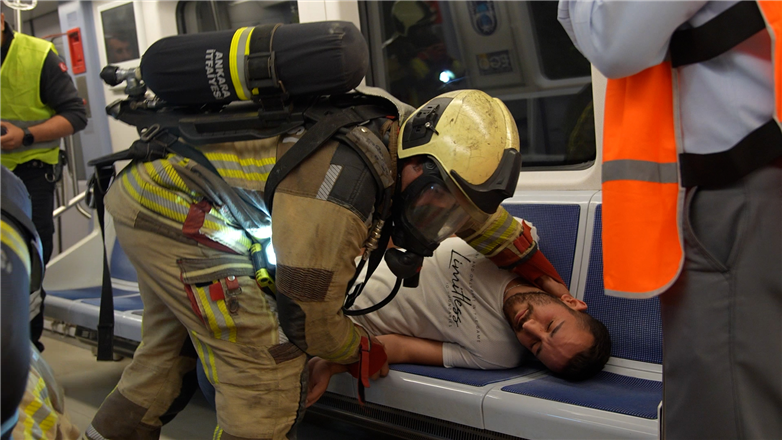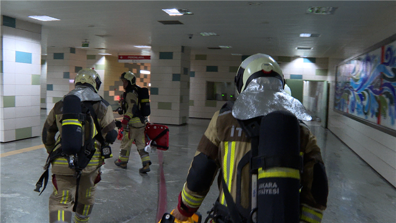 ASKİ İstasyonu’na yanaşan ve içi duman dolu vagona giren Ankara İtfaiyesi ekiplerinin yolcuları başarılı bir şekilde çıkardığı tatbikatta, vagon içerisindeki duman da kısa sürede tahliye edildi.