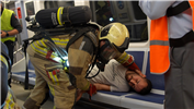 Acil durum ekiplerinin de müdahalede bulunduğu tatbikatta, yaralılar trenden çıkarılarak sedyeye alındı ve bekleyen ambulanslara götürüldü.