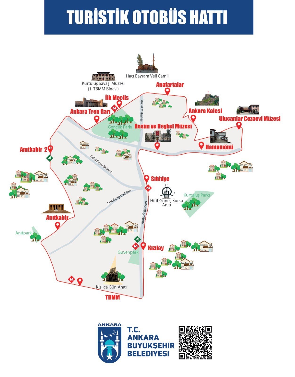 Anıtkabir, Ankara Kalesi, I. Meclisi ve Hamamönü gibi başkentin simge duraklarını kapsayan bu özel güzergâh, her Cumartesi ve Pazar 10.00-18.00 saatleri arasında ring seferleriyle Ankaralılara hizmet vermeye devam edecek.