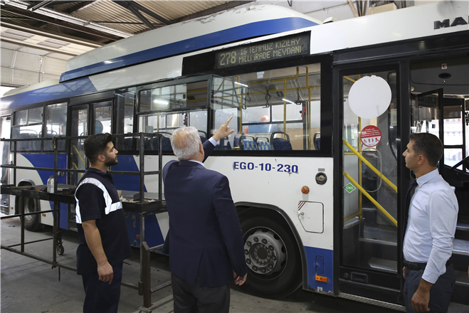 Ankara Büyükşehir Belediyesi EGO Genel Müdürlüğü, her gün yüz binlerce yolcunun kullandığı toplu ulaşım araçlarının bakım, temizlik ve güvenlik kontrollerini titizlikle sürdürüyor.