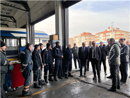 EGO Genel Müdür Yardımcıları Bülent Kılıç ve Yahya Şanlıer Otobüs İşletme Dairesi Başkanlığı 5. Bölge Otobüs İşletmesi Şube Müdürlüğünü ziyaret etti.